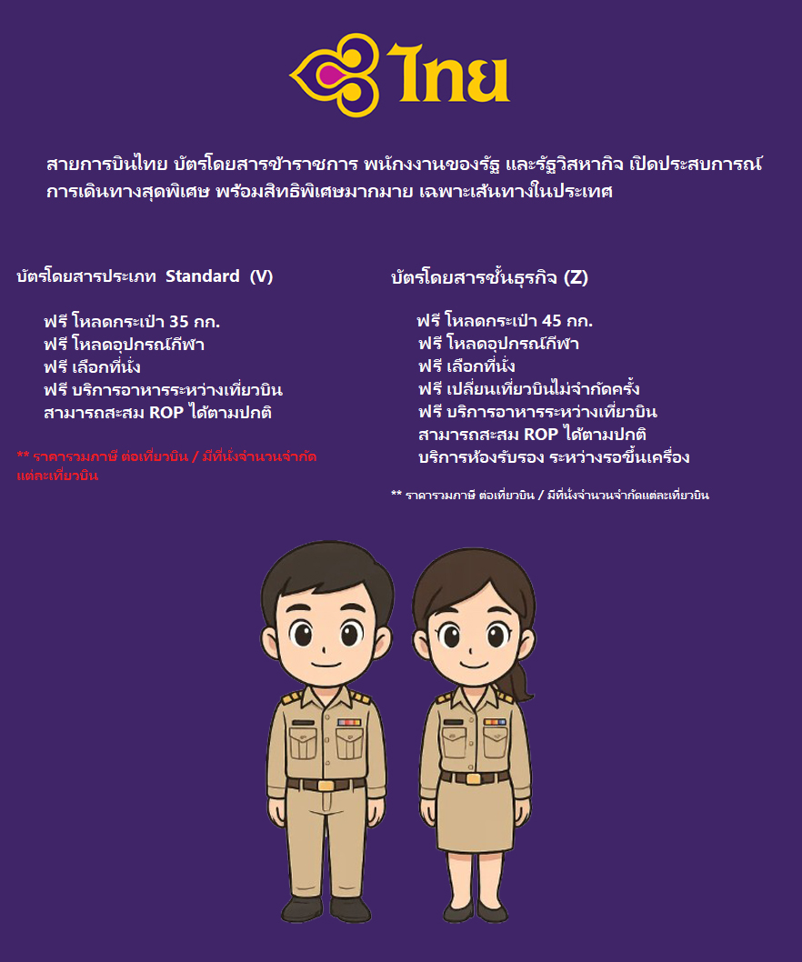 บริการจองตั๋วเครื่องบินราคาพิเศษสำหรับข้าราชการ บัตรโดยสาร ราคาเดียวทุกเที่ยวบิน ทุกวัน